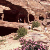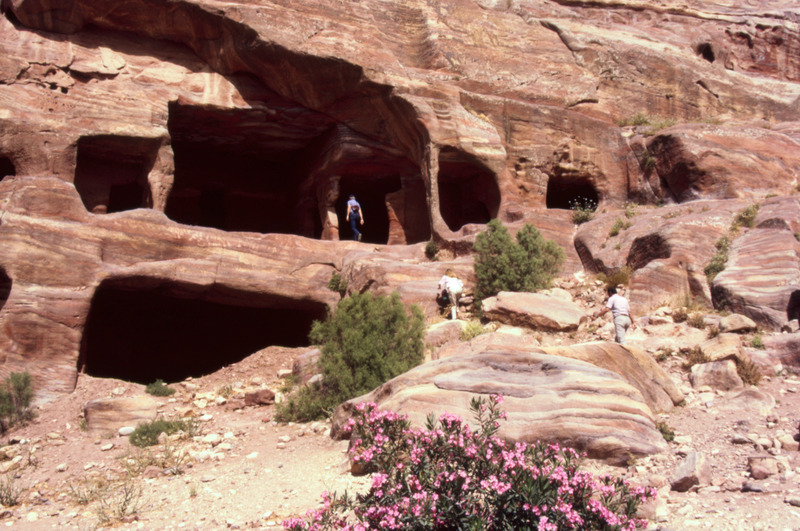 Jordan. Petra, open faces of rock dwellings on the north slope of al-Habis, near the wadi Siyyagh