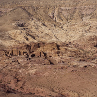 Jordan. Petra, Mughar an-Nasara, Triclinium and tomb, aerial