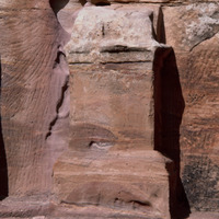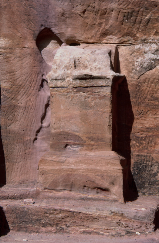 Jordan. Petra, altar opposite lion monument in Wadi Farasa