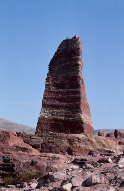 Jordan. Petra, one of the two obelisks near the High Place