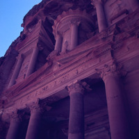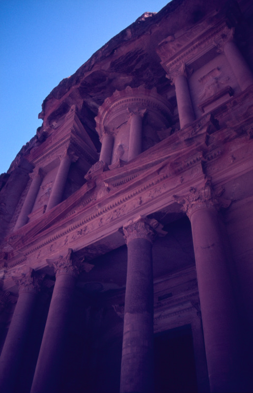 Jordan. Petra, Khaznet Far'oun (Treasury) view from outer Siq