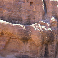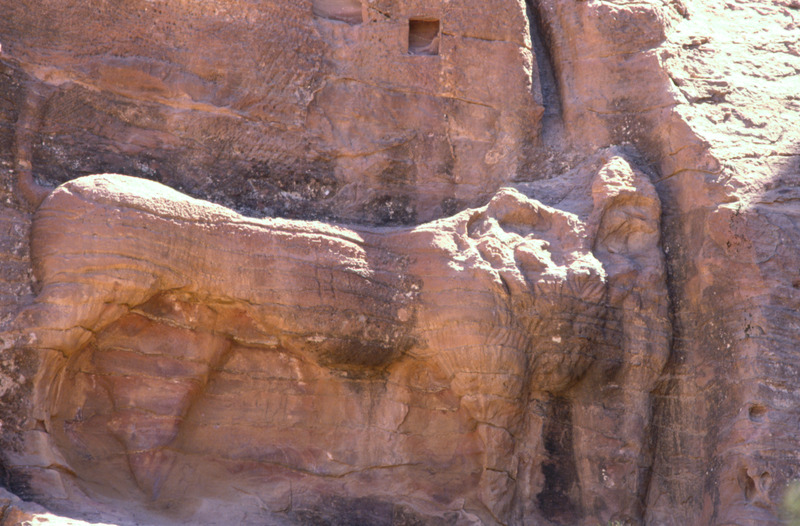 Jordan. Petra, lion fountain in Wadi Farasa