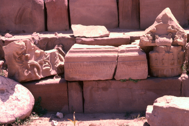 Jordan. Petra, Greek inscription found 1964 on base for statue of a Roman governor of Arabia Qasr al-Bint Temenos