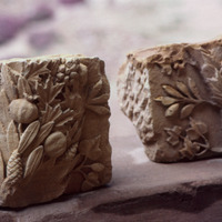 Jordan. Petra, fragments of a frieze with festoons and garlands