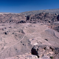 Jordan. Petra, view of Royal Tombs, colonnaded street