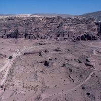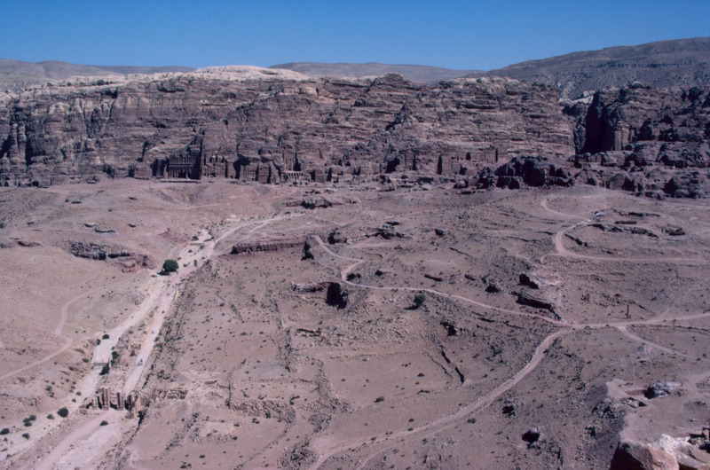 Jordan. Petra, view of Royal Tombs, colonnaded street