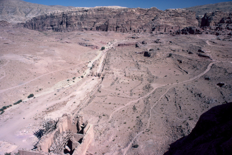 Jordan. Petra, view of Royal Tombs, colonnaded street and Qasr al-Bint