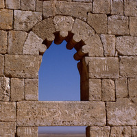 Jordan. Qasr al-Hallabat, eighth century Umayyad Mosque with cusped arch