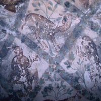 Jordan. Qusayr Amra, a gazelle sniffing, and a bear is playing a three-stringed lute - مشهد لغزال تشتم ، ومشهد لدب يعزف على عود ذي ثلاثة أوتار