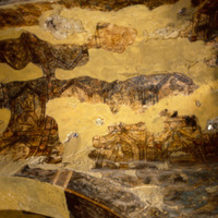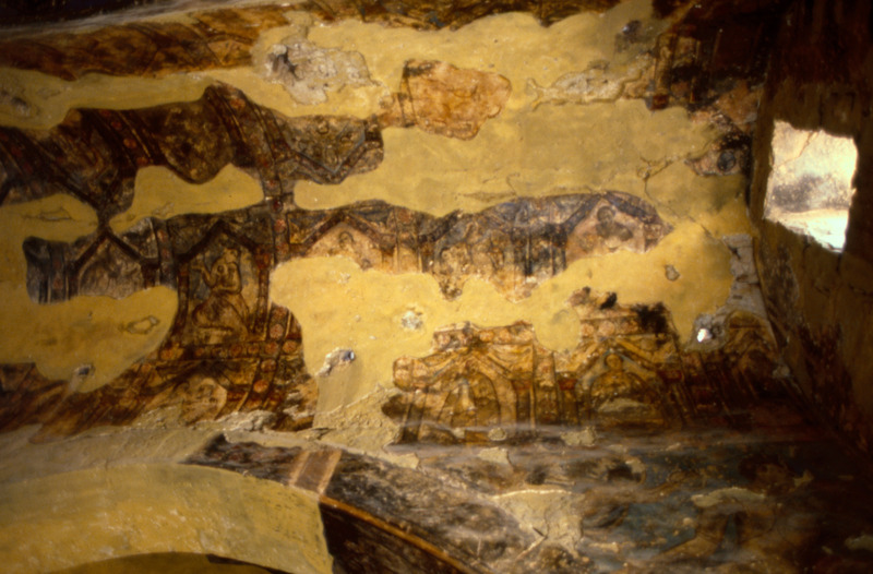 منظر داخلي للقاعة الكبرى باتجاه الناحية الغربية. وفي الجزء العلوي ترى بعض تصاوير القبو المتوسط وفي الخلفية، مناظر مختلفة من الرواق الأيمن