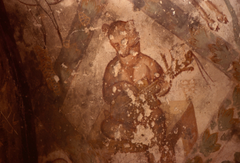 Jordan. Qusayr Amra, bear is playing a three-stringed lut - مشهد دب يعزف على عود ذي ثلاثة أوتار