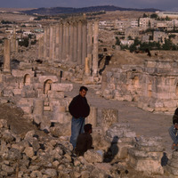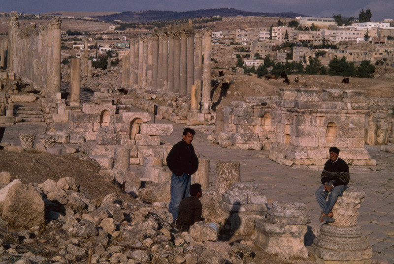 Jordan. Jerash, central section of Cardo looking north from South Tetrakionion