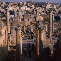Jordan. Jerash, doorway and steps leading from Cardo to Cathedral