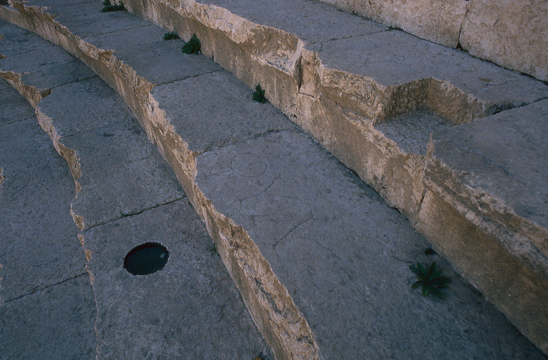 Jordan. Jerash, North theater seating, inscription, Greek