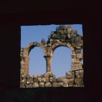Jordan. Mafraq, Umm al-Jimal, double window of House XVII-XVIII