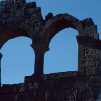 Jordan. Mafraq, Umm al-Jimal, double window of House XVII-XVIII