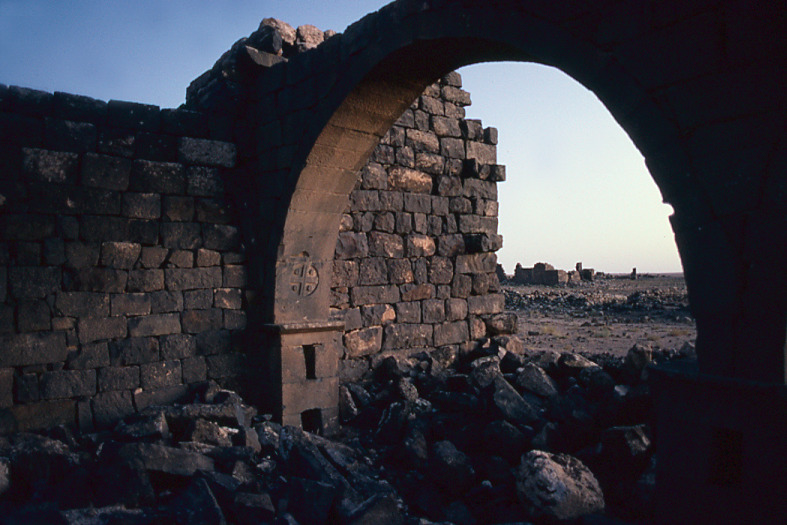 Jordan. Mafraq, Umm al-Jimal, Christian cross on Byzantine Church