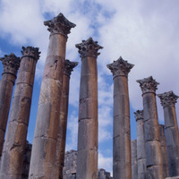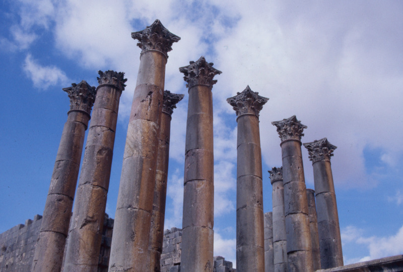 Jordan. Jerash, Corinthian columns heads, Temple of Artemis