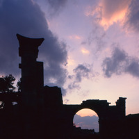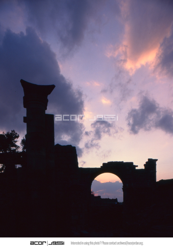 Syria. Bosra, Nabataean gate at sunset