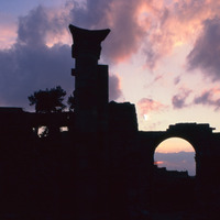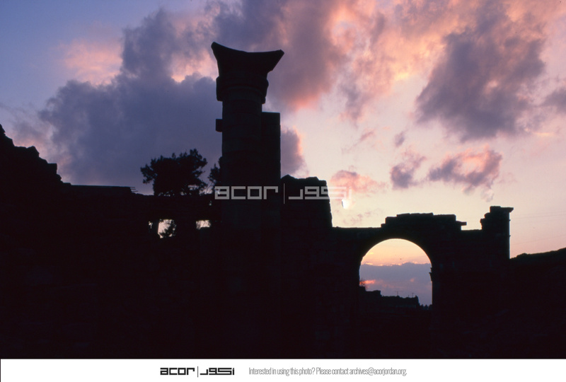 Syria. Bosra, Nabataean gate at sunset