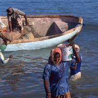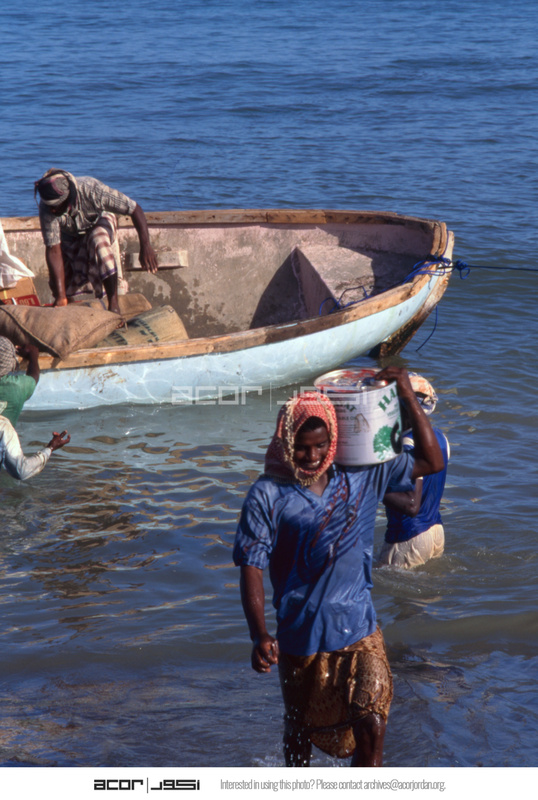 Yemen. Socotra, Hadibou beach, unloading imports