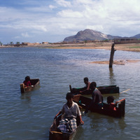 Yemen. Socotra, Hadibou , boys in miniature boats