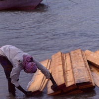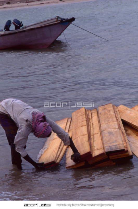 Yemen. Socotra, unloading boat at Qalansiya