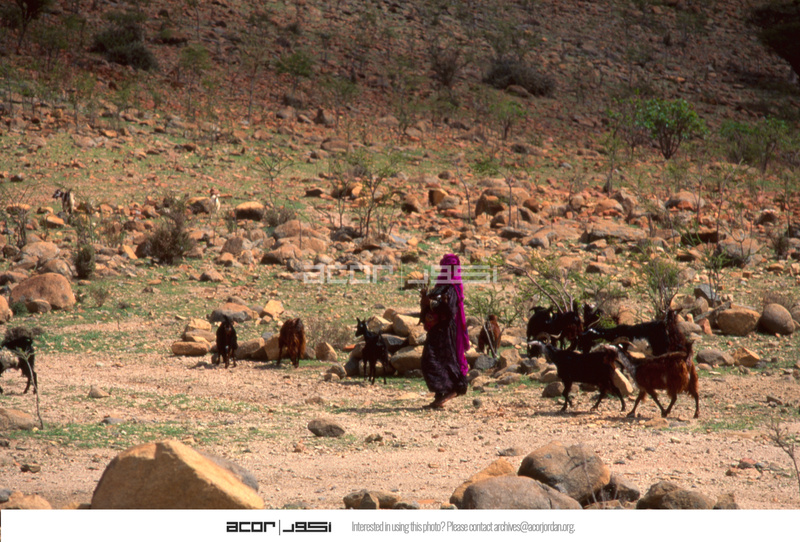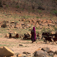 Yemen. Socotra, women and goats in inland wadi