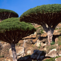 Yemen. Socotra, Dragon's blood trees Dracaena cinnabari near Momi