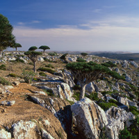 Yemen. Socotra, Dragon's blood trees Dracaena cinnabari near Momi