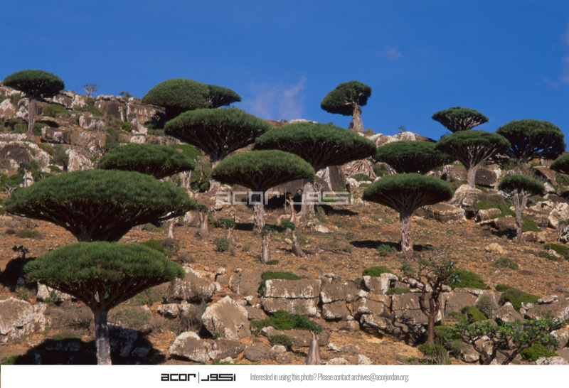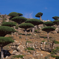 Yemen. Socotra, Dragon's blood trees Dracaena cinnabari near Momi