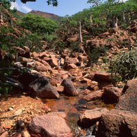 Yemen. Socotra, bottle trees (Adenium socotranum)