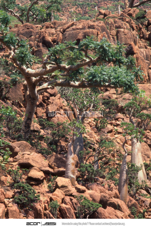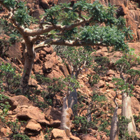 Yemen. Socotra, boswellia elongata and Adenium socotranum
