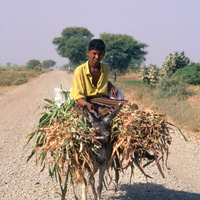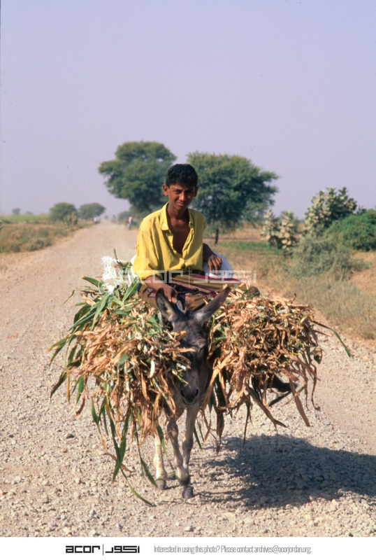 Yemen. Wadi Rima, Tihama, man on laden donkey
