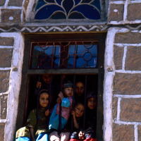 Yemen. Jibla, children in window
