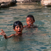 Yemen.Yafrus, Mosque of Ahmad ibn Alwan, boys in pool