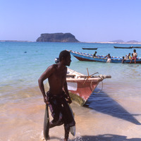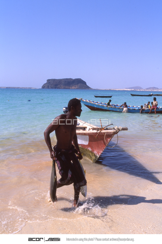 Yemen. Bir Ali fishermen, Husn al-Ghurab behind