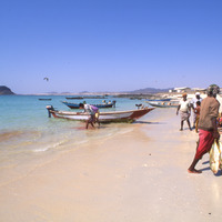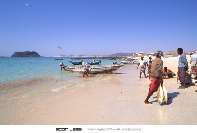 Yemen. Bir Ali fishermen, Husn al-Ghurab behind