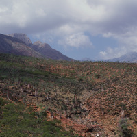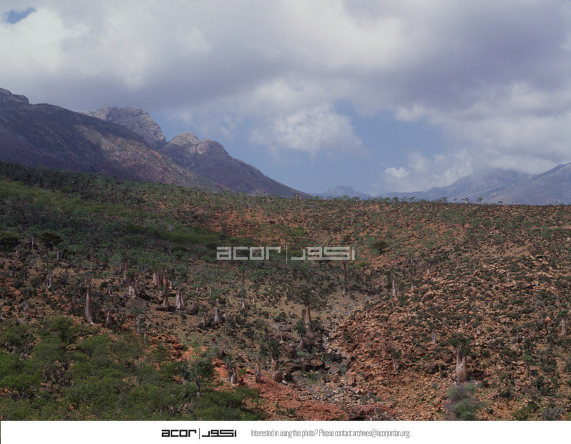 Yemen. Socotra, hills and bottle trees (Adenium socotranum)