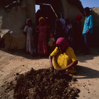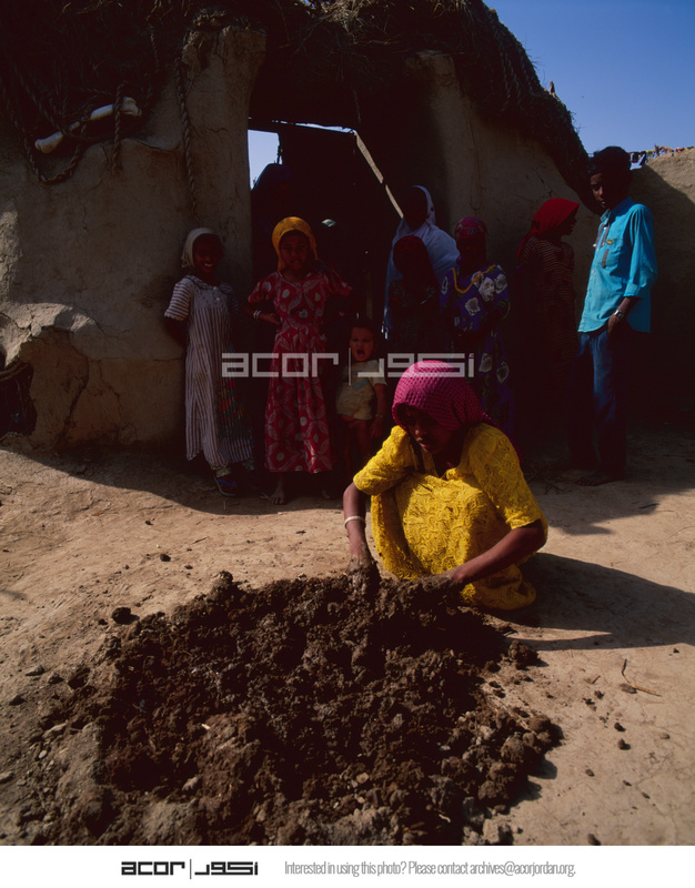 Yemen. Mahal al-Haarib, north Tihama making mud plaster