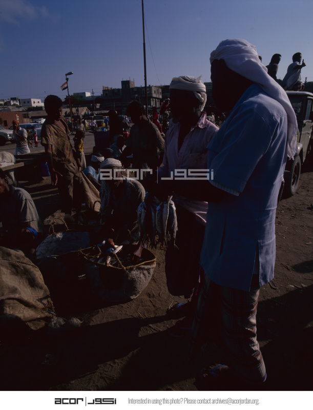 Yemen. Hodeida, fish market, selling the catch