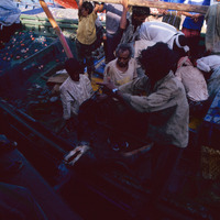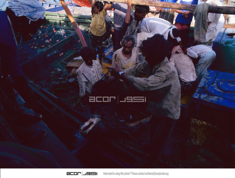 Yemen. Hodeida, unloading shark from fishing boat