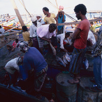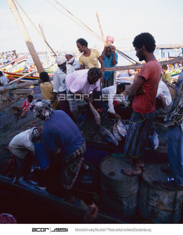 Yemen. Hodeida, unloading fishing boat