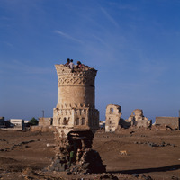 Yemen. Mocha, Dilapidated minaret and warehouses