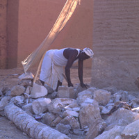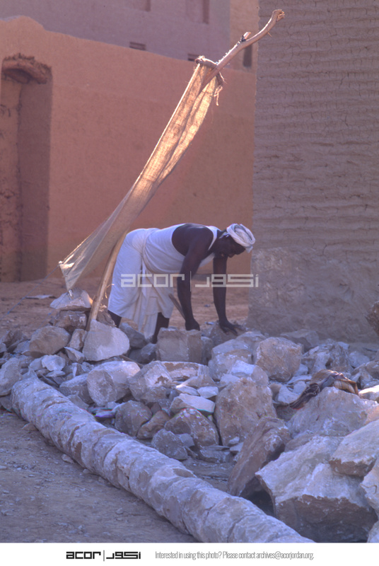 Yemen. Aynat, Wadi Hadhramaut, making column drums