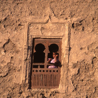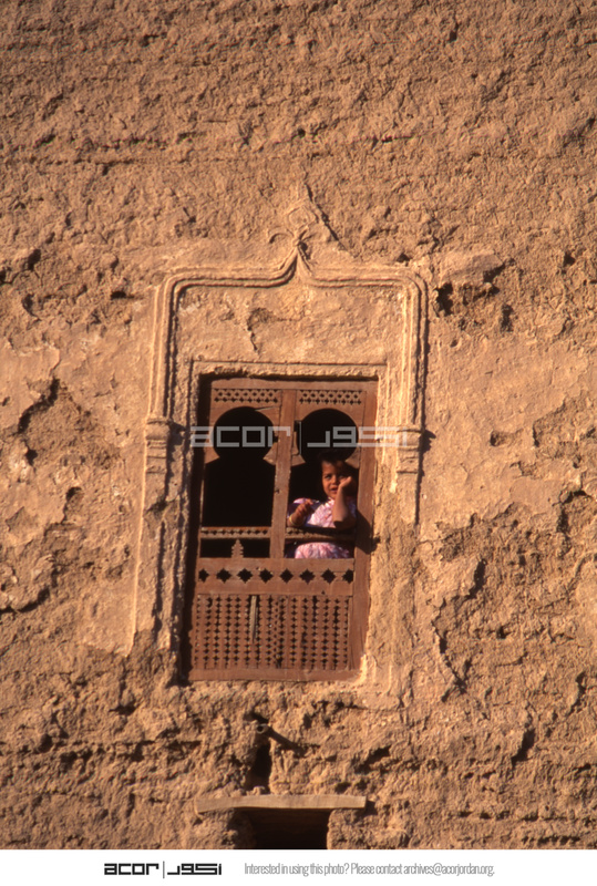 Yemen. Aynat, Wadi Hadhramaut, child at window