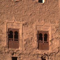 Yemen. Aynat, Wadi Hadhramaut, child at window