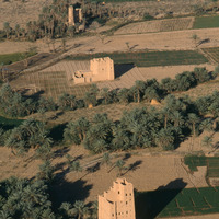 Yemen. Wadi Hadhramaut, house and farmland near Seiyun