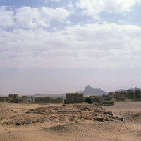 Yemen. Timna, Temple of Athtar and village behind