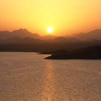 Yemen. Marib, sunset over new dam